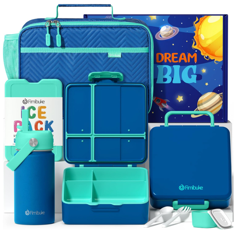 4. Fimibuke Kids Bento Lunch Box mit isolierter Flasche und Tasche