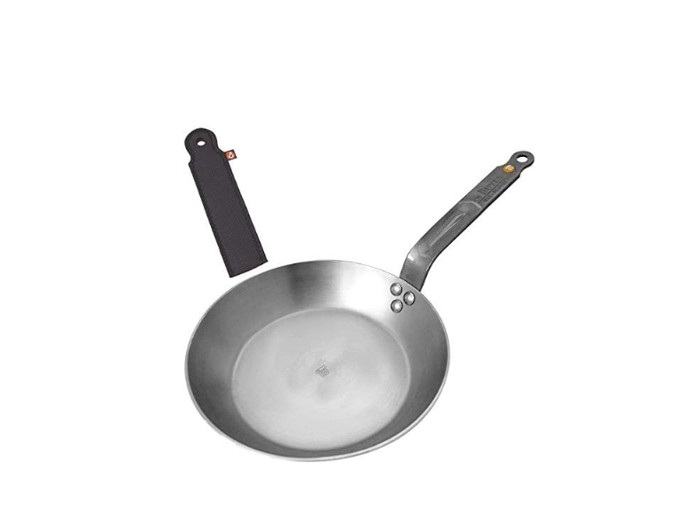 Eine traditionelle Kohlenstoffstahlpfanne, die im Vergleich zu Gusseisen leicht ist, aber eine natürliche Antihaftbeschichtung durch Einbrennen aufbaut. Es erhitzt sich schnell und sorgt für eine ausgezeichnete Bräunung – perfekt für Steaks, Pfannengerichte und Pfannkuchen, sobald es gewürzt ist. Die Oberfläche ist einfaches Eisen, daher gibt es keine synthetische Beschichtung, die abblättern könnte.